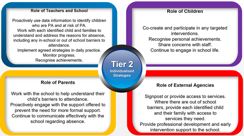 Tier 2 - Individualised Strategies and Early Help Support: Tailoring strategies to individual needs and providing early help support for persistent attendance challenges.